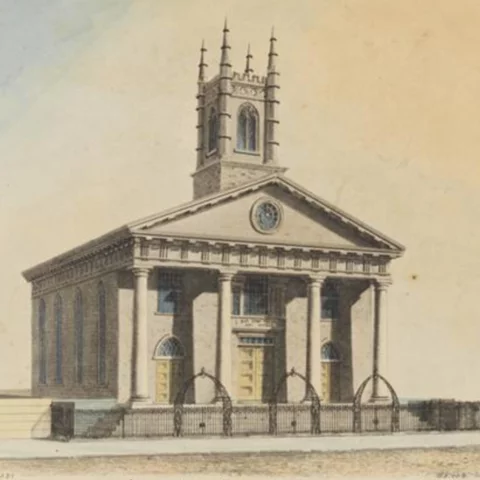 Founded in 1845, Temple Shaaray Tefila’s first place of worship was on Franklin Street in lower Manhattan, near Broadway. Rev. S. M. Isaacs, one of only two English-speaking rabbis in the United States, and a firm adherent of Orthodox Judaism, served as the first rabbi of the congregation (and continued to serve until 1877).