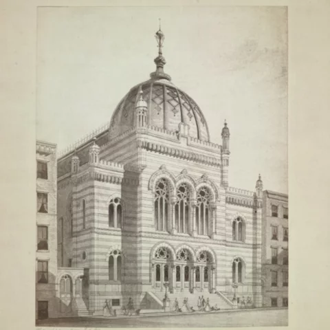 In 1862, with the neighborhood changing and the New York City Jewish population’s uptown migration, the congregation sold the building. Until 1869, the congregation worshiped in the old armory at the Herald Building.